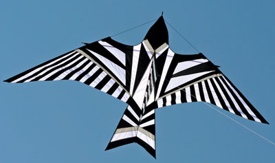 With a wingspan that is just under 16′ and standing 8′ tall, Into the Wind's Sky Bird will stand out in any crowd. This graceful flyer is made with a ripstop nylon sail and carbon fiber spars. If the Sky Bird kite is too large for you check out it's smaller and less expensive brother the Cloud Bird.